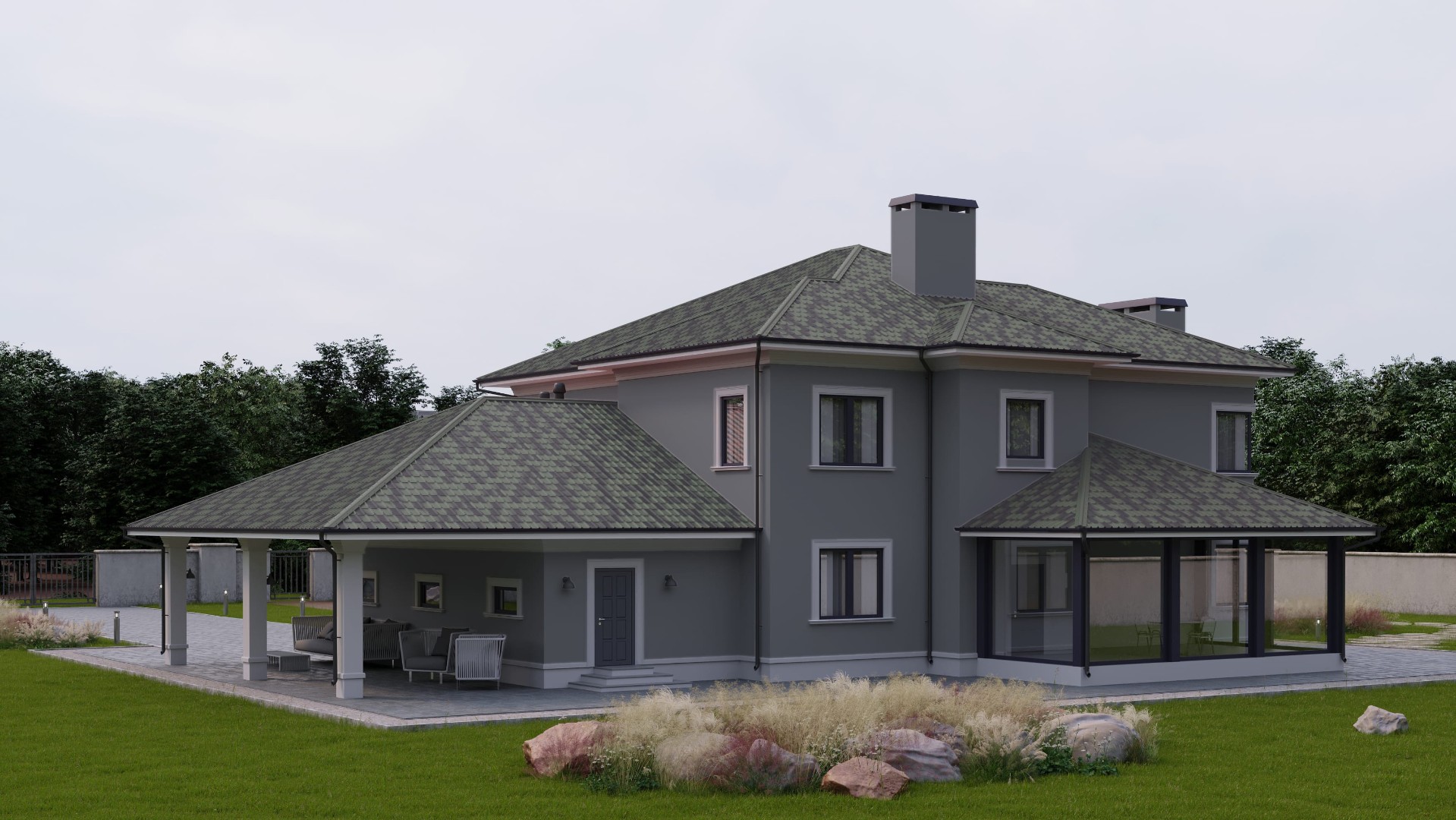 Она прекрасно сочетается с деревянными, каменными или домами из кирпича.